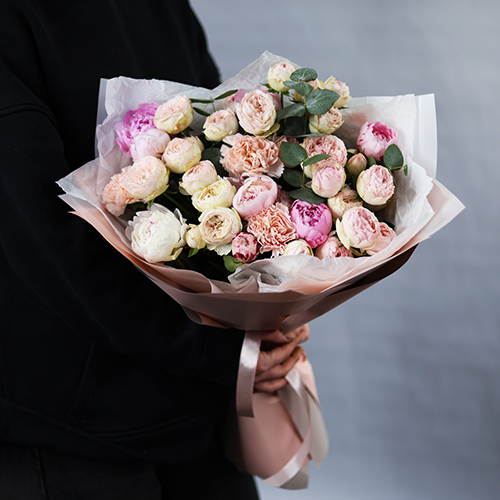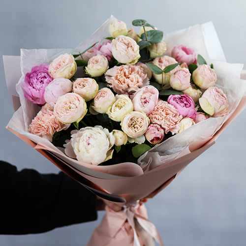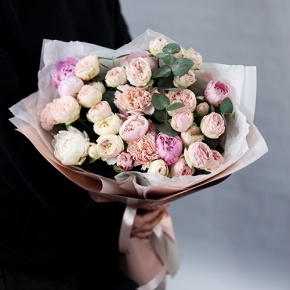 Букет "Алексис" из пионов, пионовидных роз и диантусов